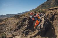 The KTM EXC range features a rider-focussed body-position triangle, providing improved knee contact – especially when standing on the pegs – with improved gripping surfaces all around. With the plastics working to expel mud buildup in wet, muddy conditions, a flat seat profile with a high grip seat cover providing exceptional rider movement and control, and a polyamide-reinforced aluminum subframe providing unmatched rider feel and feedback, your only concern is navigating the terrain ahead of you.