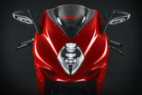 The R takes all the characteristics of the F3 to an extreme, with lines designed for performance and projected into the future. Style and performance find their ultimate expression in the contrast between the red fairing and all black components.