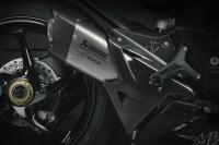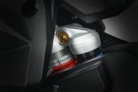 At the front, the Brembo braking system relies on four-piston callipers and 320-mm floating discs. The ABS is by Continental, with the compact MK100 providing Rear Wheel Lift-Up Mitigation (RLM) and the cornering function.