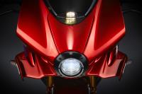 The new MV Agusta Superveloce 1000 Serie Oro is both a dream and a work of art. Distinctive stylistic elements include round headlights referencing MV Agusta’s past, horizontally developed lines, and the aesthetic enhancement of using precious materials like carbon fibre, genuine leather, Alcantara and titanium. The design of the Superveloce 1000 Serie Oro pays homage to the legendary MV Agusta F4 750 Serie Oro, as highlighted by the stylized-star-shaped wheels and the 4-exit titanium exhaust system. The meticulous attention to every detail ensures harmony between forms, materials, and performance. The glorious past of MV Agusta is revived on the Superveloce 1000 Serie Oro through the choice of the color scheme: Ago Silver, Pearl Shock Red, and Ciclistica Gold.