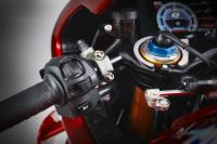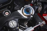 The Superveloce 1000 Serie Oro shocases a four-cylinder inline engine capable of delivering 208 HP (153 kW) at 13,000 RPM and 116.5 Nm of torque at 11,000 RPM. Thanks to the use of 16 radial titanium valves, a distinctive feature of all MV Agusta four-cylinder engines, forged titanium connecting rods, and DLC-coated cams, the engine of the Superveloce 1000 Serie Oro can reach 14,000 RPM, and thanks to the countershaft, it maintains minimal vibration, resulting in a smooth driving experience even at performance limits.
