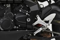 The inline three-cylinder with counter-rotating crankshaft stands out for its elasticity, performance and compactness. Nestled within the steel ALS trellis tube frame with aluminium alloy single-sided swingarm, the compact three-cylinder unleashes 147 hp of maximum power at 13,000 rpm.
